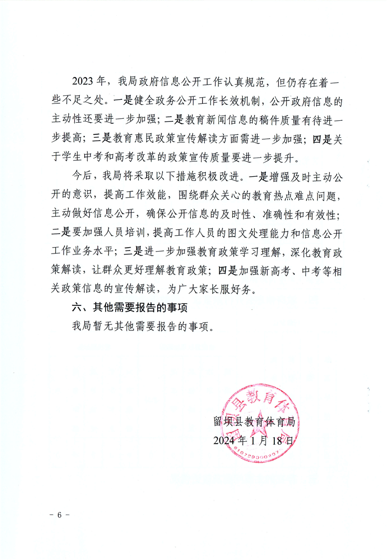 留壩縣教育體育局2023年度政府信息公開工作報告