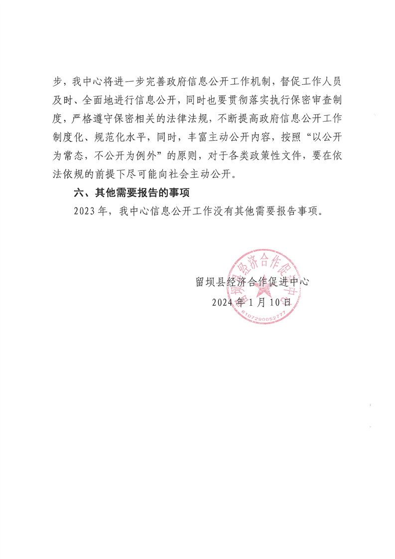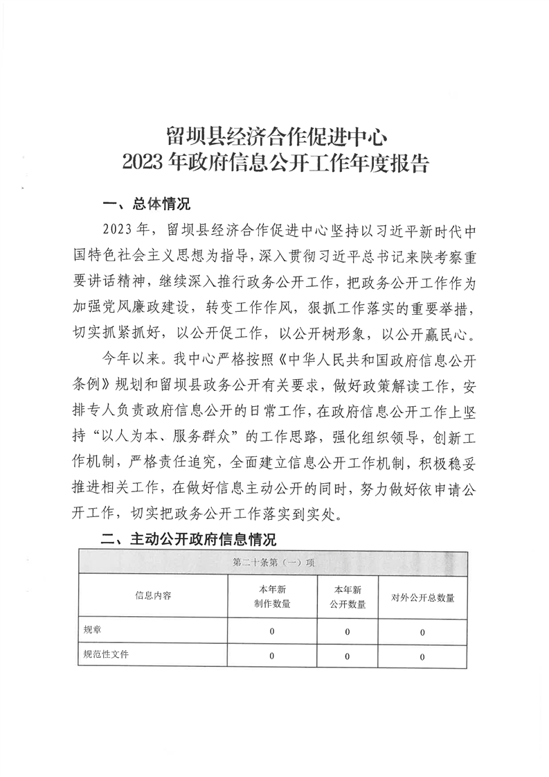 留壩縣經濟合作促進中心2023年政府信息公開工作年度報告