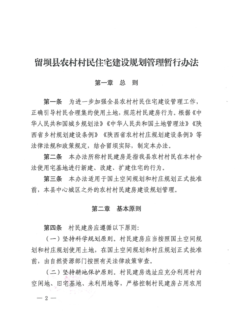 留壩縣農(nóng)村村民住宅建設(shè)規(guī)劃管理暫行辦法