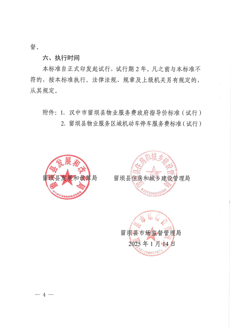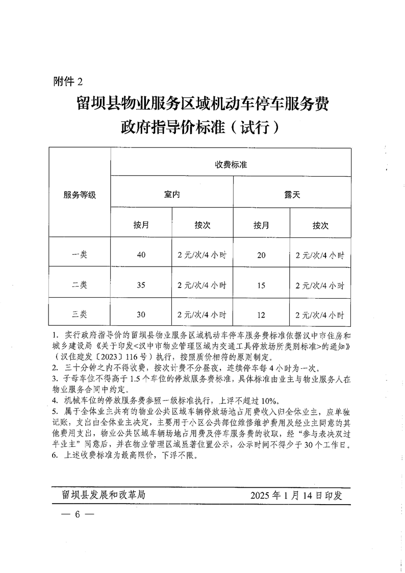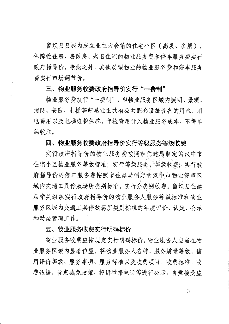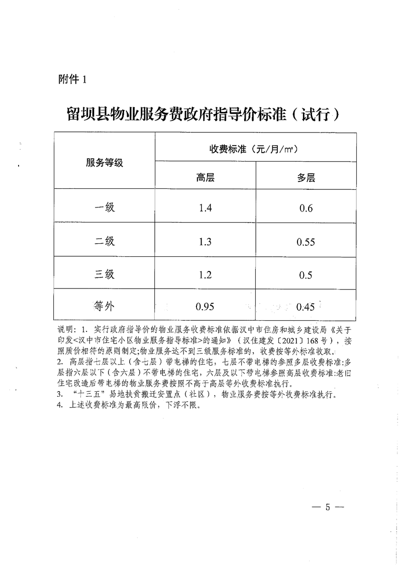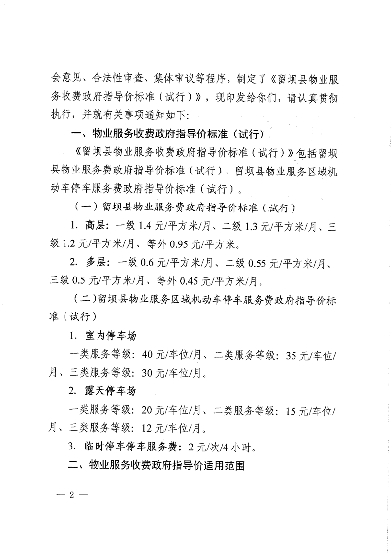 留壩縣物業服務收費政府指導價標準(試行)