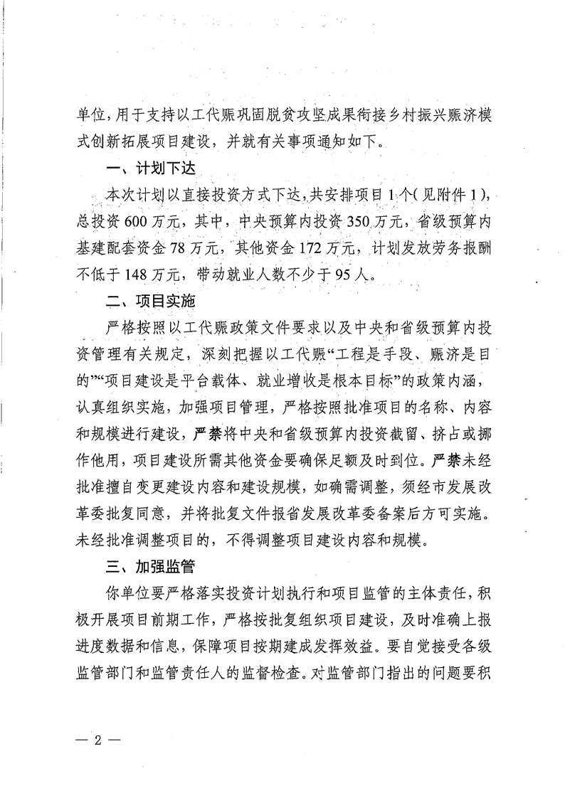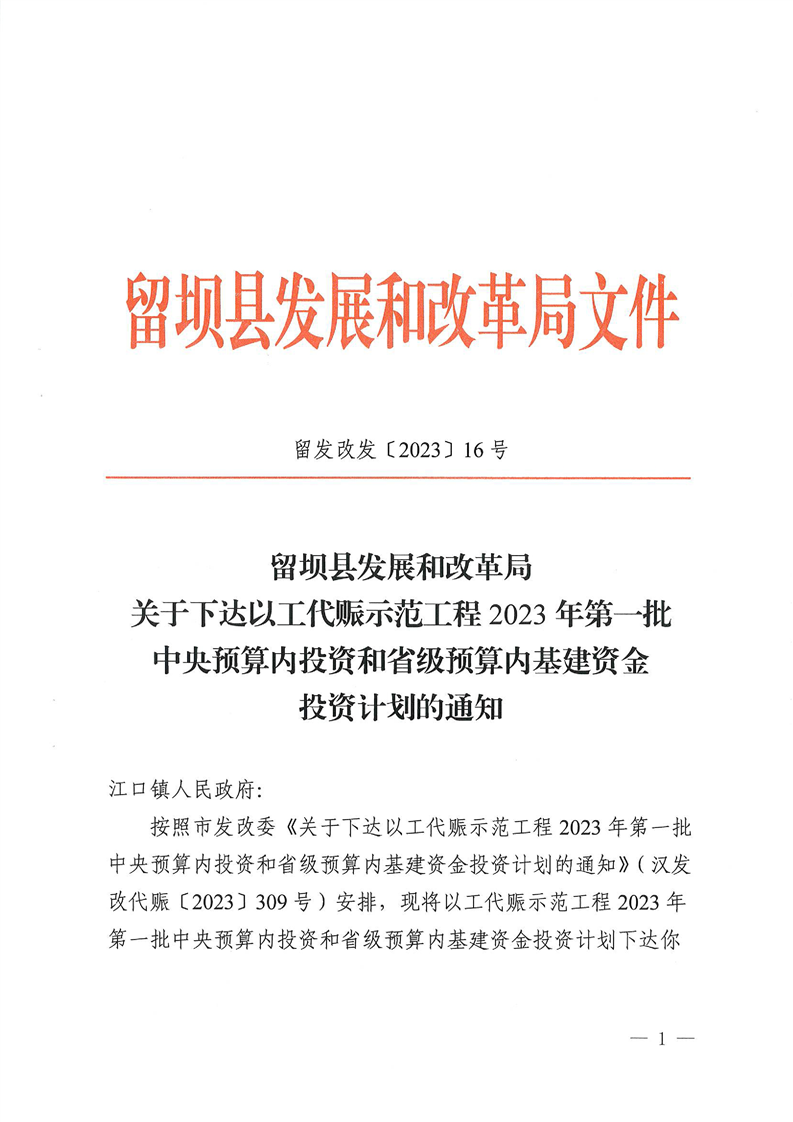 關于下達以工代賑示范工程2023年第一批中央預算內投資和省級預算內基建資金投資計劃的通知