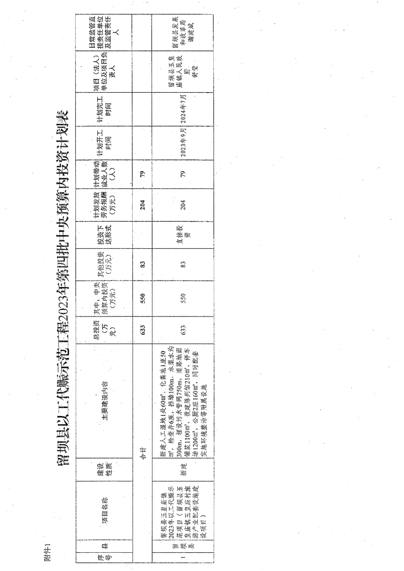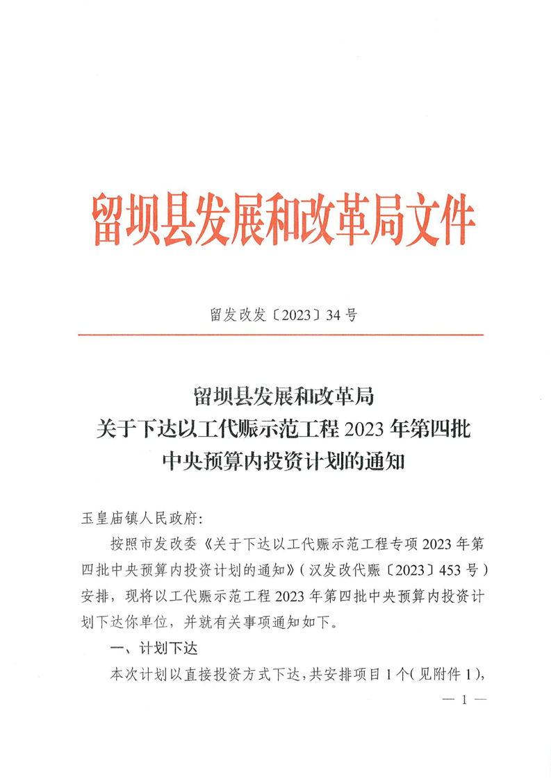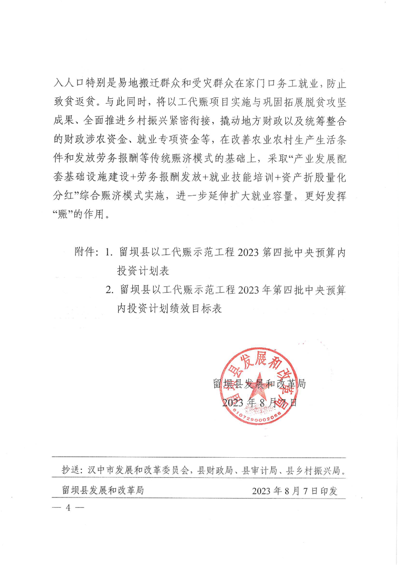關于下達以工代賑示范工程2023年第四批中央預算內投資計劃的通知