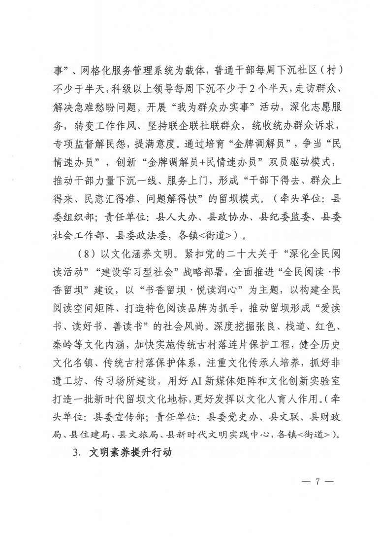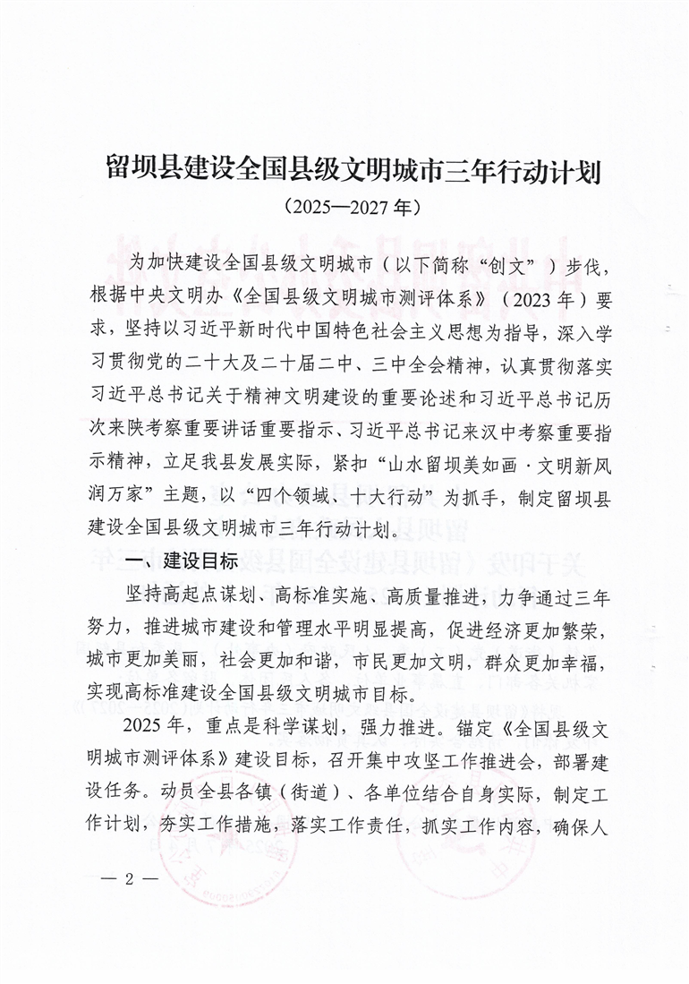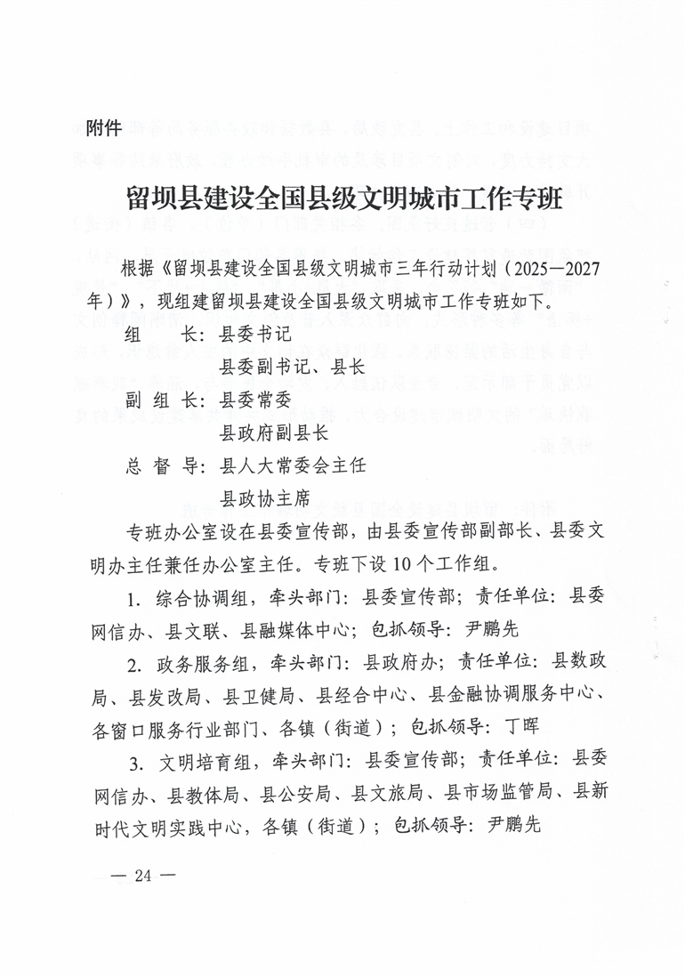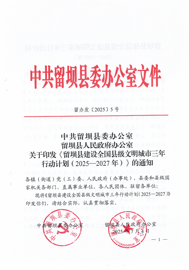 關于印發《留壩縣建設全國縣級文明城市三年行動計劃(2025-2027年)》的通知