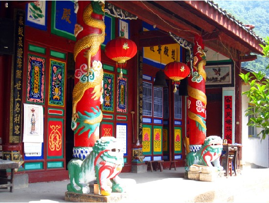青橋驛風云禪寺位于青橋驛鄉蔡家坡村東500米處。寺廟始建于明萬歷年間,后被毀。民國十三年(1924),重建大雄寶殿一座。大殿坐東向西,磚木結構。面闊三間,進深兩間,懸山灰板瓦,三架梁,前帶單步,檐下施彩繪。大殿前檐明間辟六扇隔扇門,上雕龍鳳圖案。大殿所用石柱頗大,上雕栩栩如生的浮龍圖案,柱礎雕有人物、動物、花草圖案,其中正中一間的廊檐柱礎為1對石獅。寺廟現存有文字碑5通和花鳥動物浮雕碑2通。其中可辨的有清同治十二年(1873)重修風云寺碑(碑中有"同治元年發逆入境"的記載)1通,光緒二十年(1894)令禁砍伐廟樹告示碑(褒城知縣黃氏立石)1通,民國十三年(1924)重修廟碑1通。該寺廟保存完整,結構穩定,門窗及大殿的木架結構都保持為民國原樣。近年來寺院僧人對大雄寶殿房脊及屋面和墻用現代建筑材料進行了維修,并施以彩畫,使大殿已失原有風采。