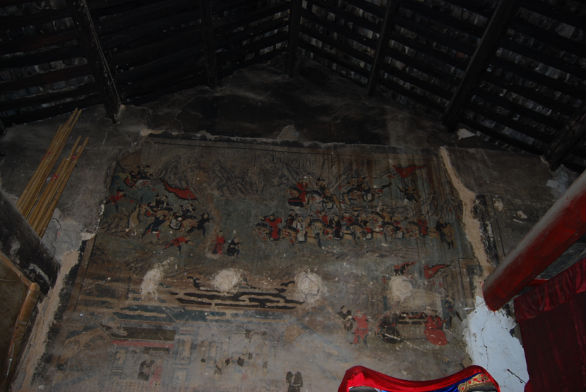 三圣宮位于武關驛鎮上南河村南河西岸的山坡上,周圍為居民區。三圣宮為一座單體建筑,平面呈長方形,抬梁式結構,歇山頂,灰板瓦屋面,花脊,土坯墻。三圣宮面闊三間,進深五架,有臺基,前帶寬廊,正中為一樓閣,明間開兩扇格子門。脊瓦施花瓣紋,南面山墻上部彩繪三國戰爭故事圖案,廊下南墻墨線繪人物圖一幅。廊下保存有清光緒七年(1881)集資修繕碑1通,清光緒十二年(1886)官府立章程碑1通。近年來三圣宮又恢復了宗教活動。三圣宮是留壩縣境內保存不多的古代廟宇之一,對研究當時的社會文化有重要意義。