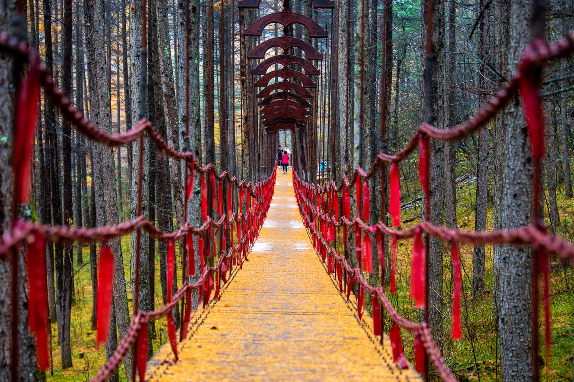 游玩指南:位于留侯鎮閘口石村,距縣城約25公里。500畝高大的落葉松整齊排列兩側,成了一條由密林構成的“峽谷”。依山勢而筑的木質步道曲曲折折,溪流清澈見底,夏季清涼愜意,秋季美景如畫。