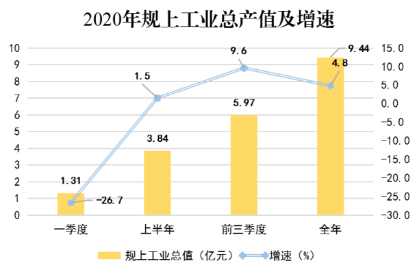 規模以上工業完成總產值9.44億元,同比增長4.8%。其中,輕工業完成產值5.99億元,增長20.8%;重工業完成產值3.45億元,下降14.5%。全部工業增加值2.41億元,同比增長5.8%,