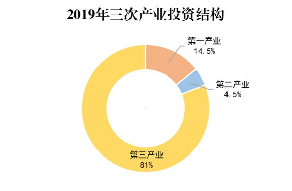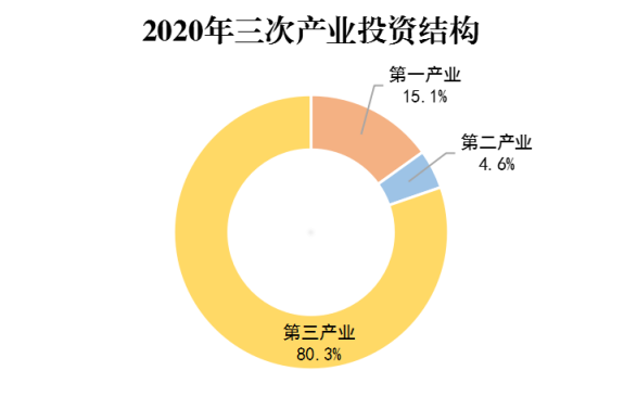 固定資產投資中,第一產業完成投資比上年增長12.1%;第二產業完成投資比上年增長8.0%;第三產業完成投資比上年增長6.1%。第一、第二和第三產業投資占比分別為15.1%、4.6%、80.3%。