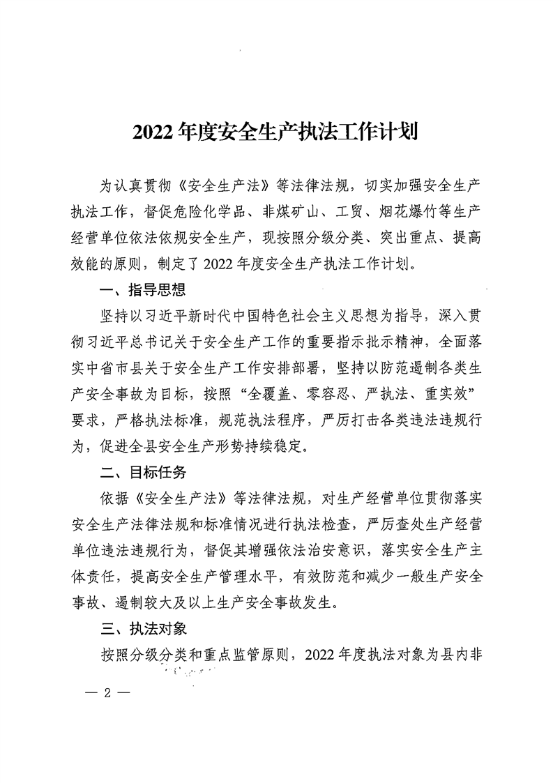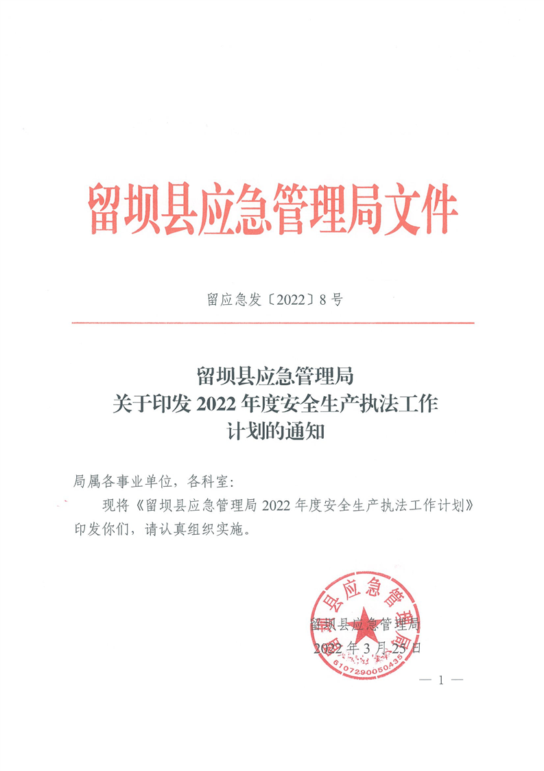 留壩縣應急管理局2022年度安全生產執法工作計劃