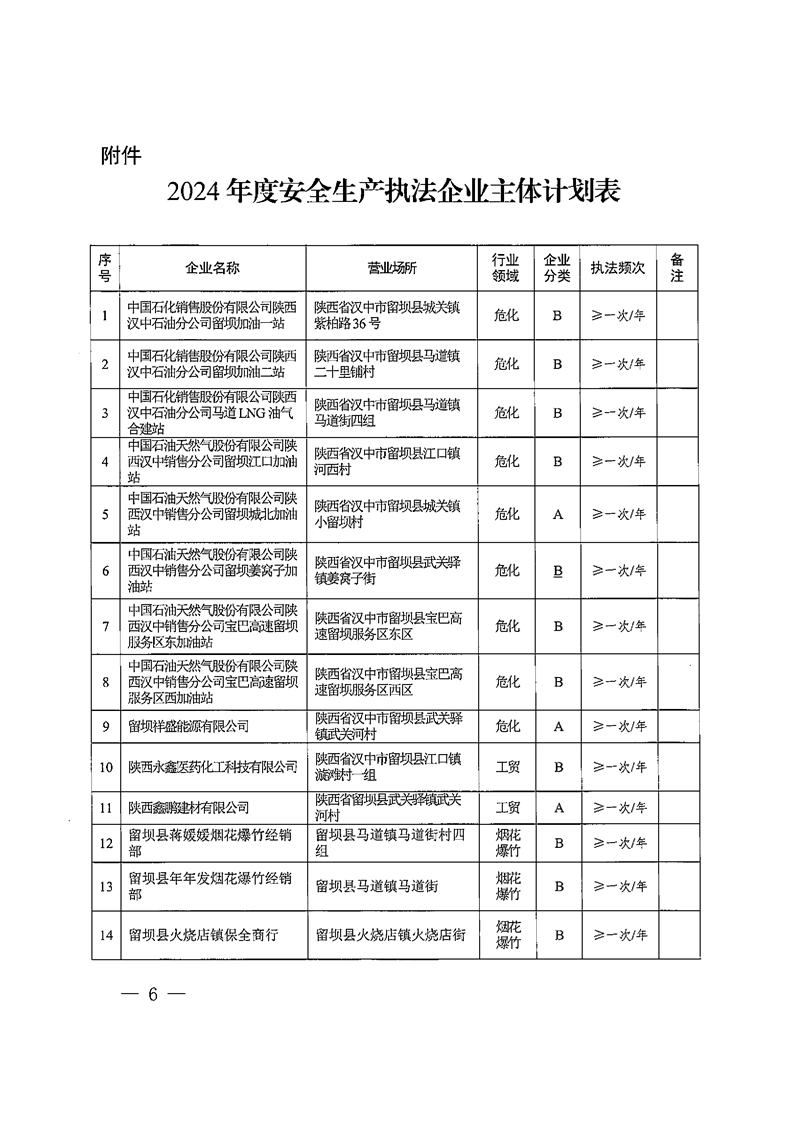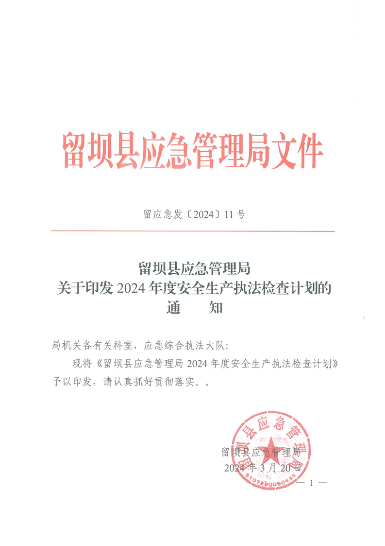 留壩縣應急管理局關于印發2024年度安全生產執法檢查計劃的通知