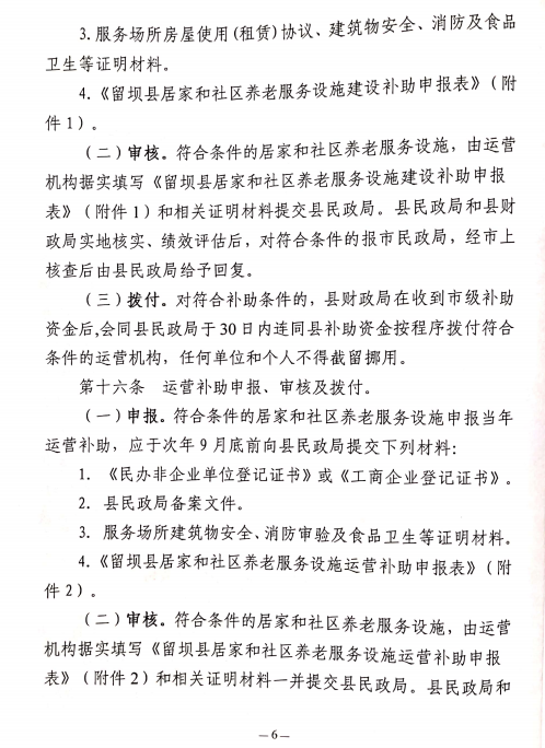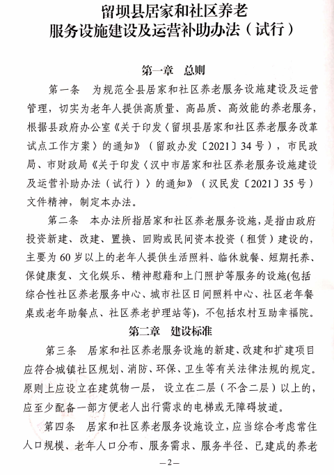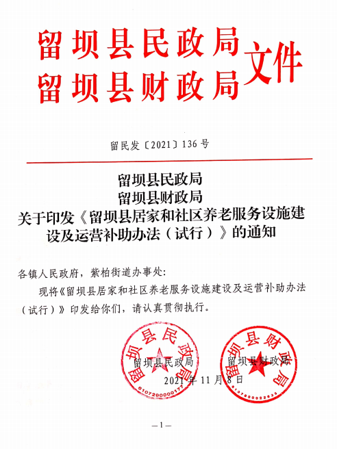 留壩縣民政局留壩縣財政局關于印發《留壩縣居家和社區養老服務設施建設及運營補助辦法(試行)》的通知