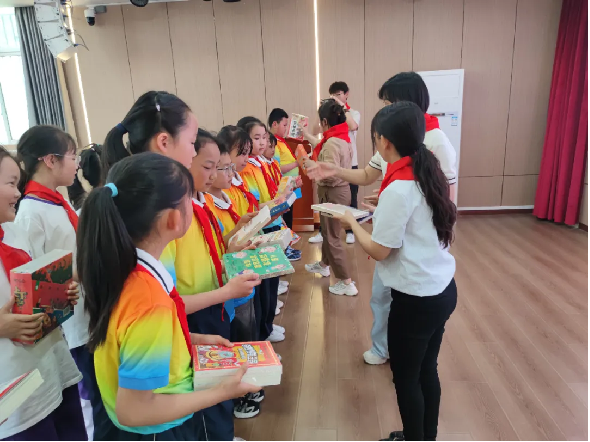 “希望同學(xué)們能夠愛上書籍、愛上閱讀,增長(zhǎng)智慧,優(yōu)化心靈,遇見更好的自己。”團(tuán)縣委轉(zhuǎn)達(dá)了捐贈(zèng)公益團(tuán)隊(duì)西安市蓮湖區(qū)艾樂生社會(huì)工作服務(wù)中心主任韋艾辰對(duì)孩子們的殷切期望,向孩子們講述著閱讀的重要性和夢(mèng)想的力量。