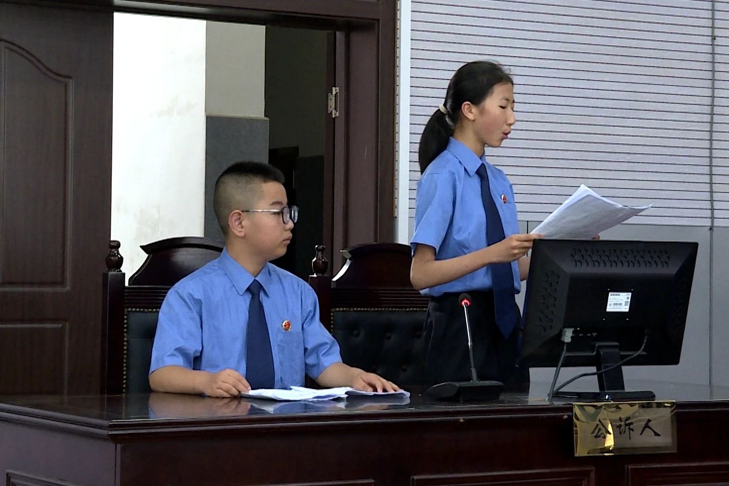“報告審判長,法庭準(zhǔn)備工作就緒,可以開庭。”