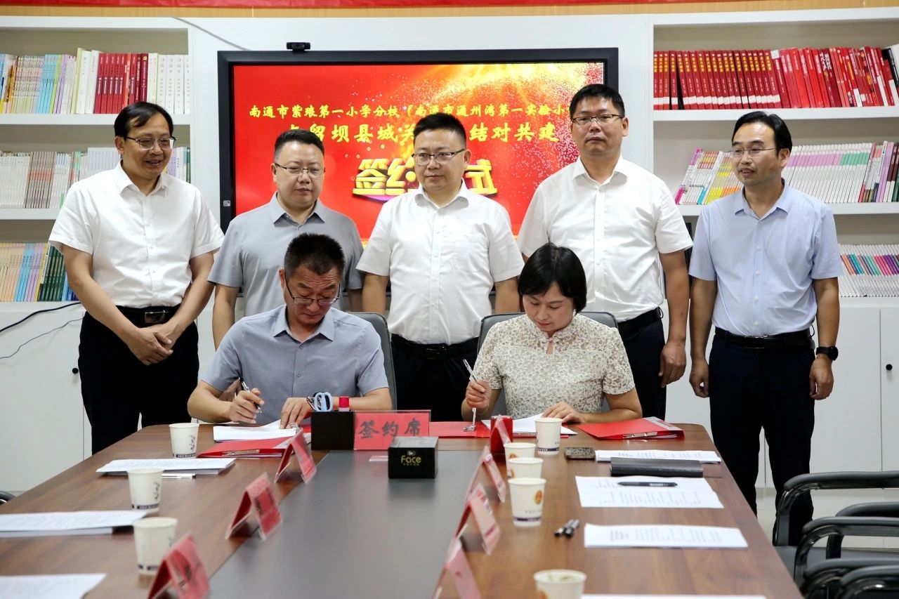 在簽約儀式上,南通市紫瑯第一小學分校(南通市通州灣第一實驗小學)介紹了學校的辦學思路、特色及主要做法,表達了對兩校結對合作發展的美好愿望。