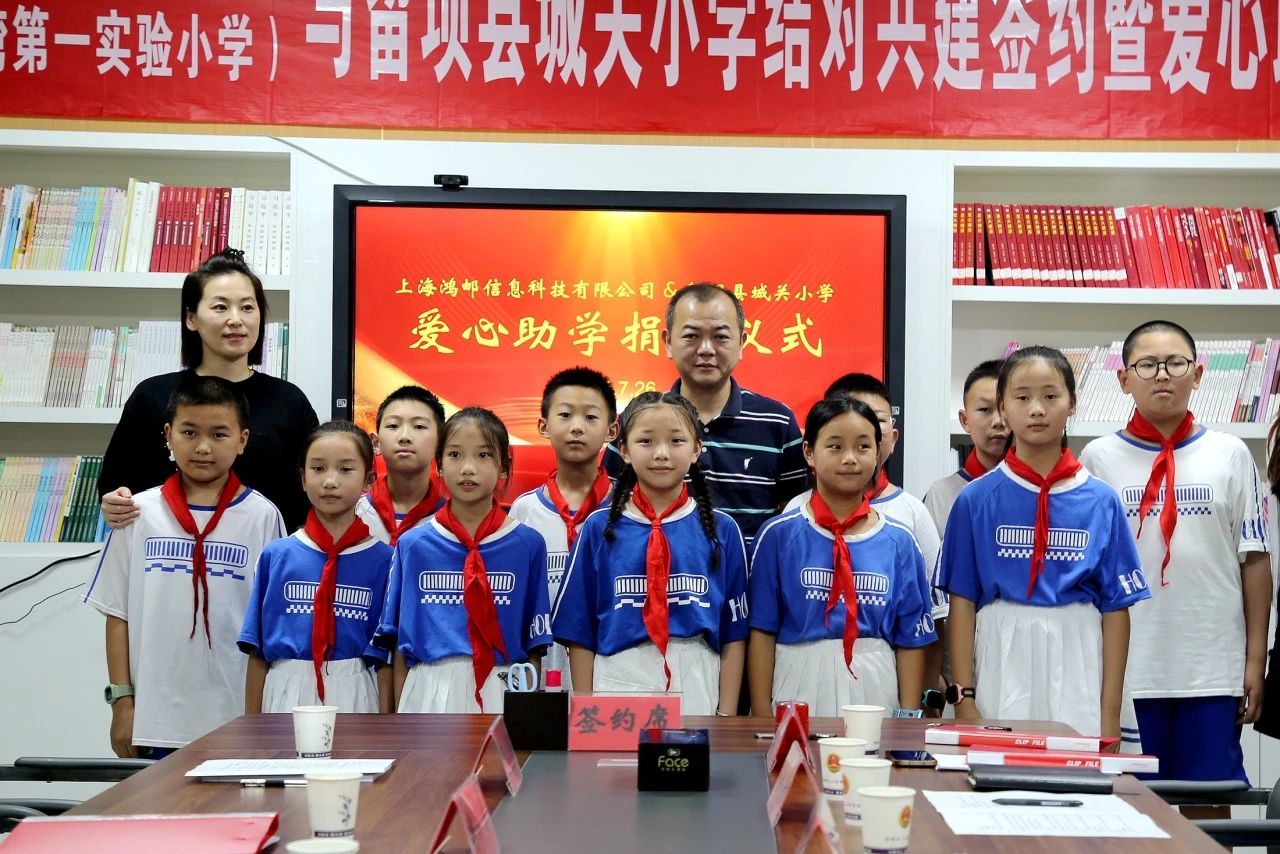 隨后,還舉行了“情系山區教育 助力鄉村振興”愛心助學活動,上海鴻郵信息科技有限公司向城關小學捐贈3萬元人民幣以及價值2萬元的物資。