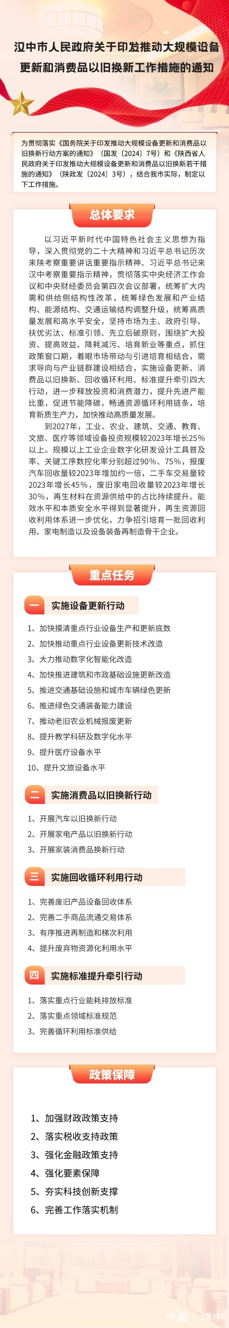 圖解:漢中市人民政府關于印發推動大規模設備更新和消費品以舊換新工作措施的通知