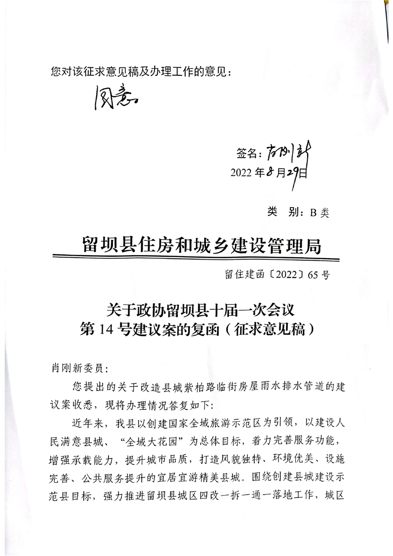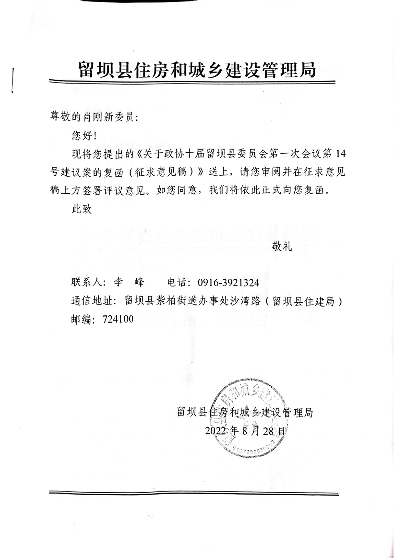 關于政協十屆留壩縣委員會第一次會議第14號建議案的復函